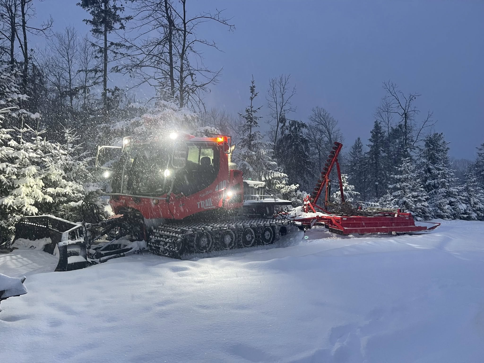 We are still waiting for more snow. There have been riders out on the trails and the reports have been good to average. The forcast is saying 1-3 inches on Thursday and if we are fortunate to receive additional snow, we will let you know. The groomers are ready & waiting!