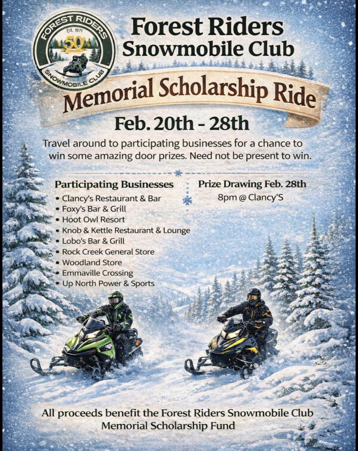 Rooms can be booked under the FOREST RIDERS SNOWMOBILE CLUB block. Room rate is $119 for a double room.